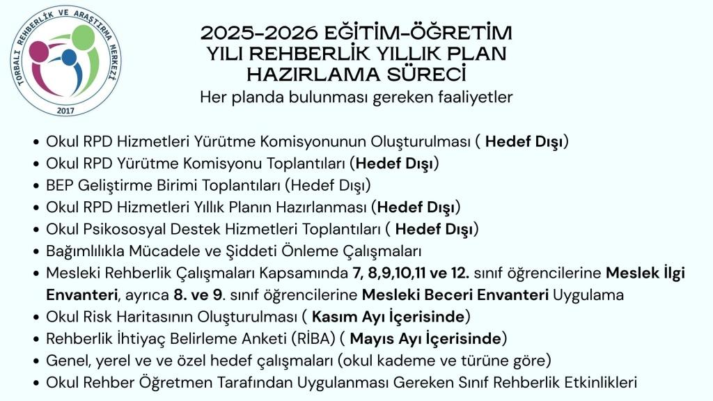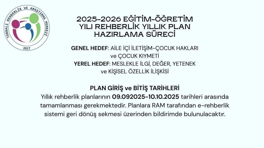 Rehberlik planlarının RAM’a son gönderim tarihi: 10.10.2025